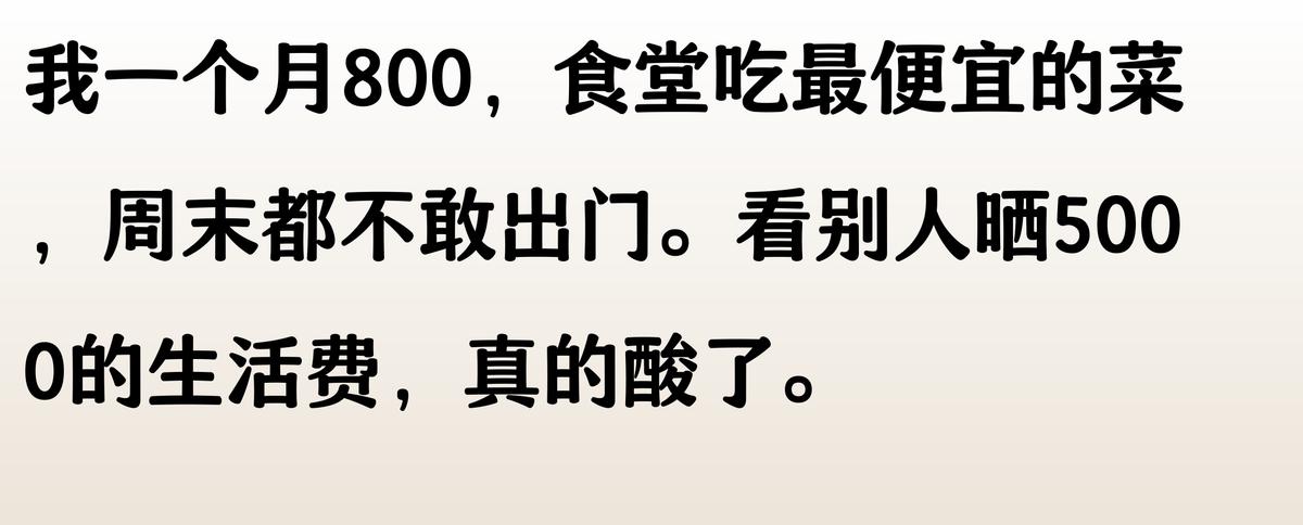 我一個月就800,吃飯都緊巴巴的。看室友天天點外賣買衣服,心里特別不是滋味。現在連宿舍聚餐都不敢去,怕AA的時候掏不出錢。