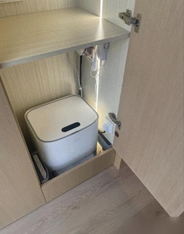 后來見朋友家做了個電動開合的隱形柜,機器人往里頭一藏,柜門自動開關,不用彎腰不用動手,客廳瞬間清爽得像樣板間。