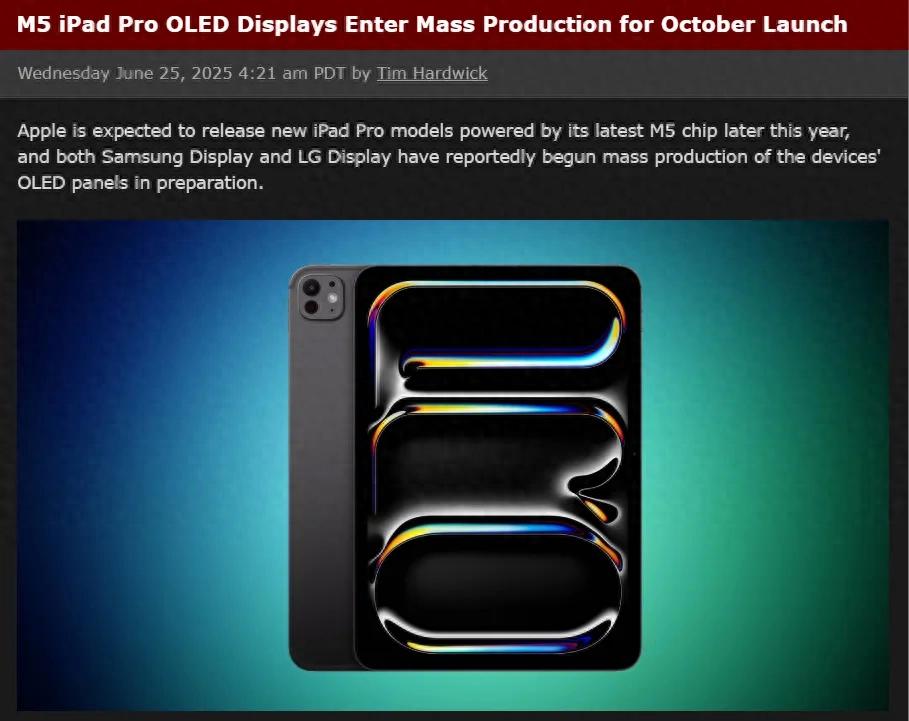 報道稱,新款iPad Pro的OLED面板由三星顯示和LG顯示共同供應,其中11英寸面板主要由三星負責供應,13英寸面板則由LG供應。