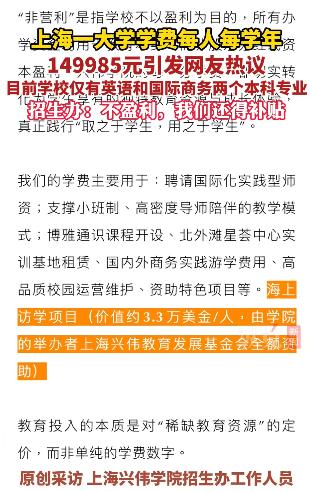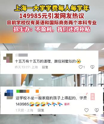 上海一大學:每年學費15萬,不掙錢還得補貼,網友:這可信嗎?