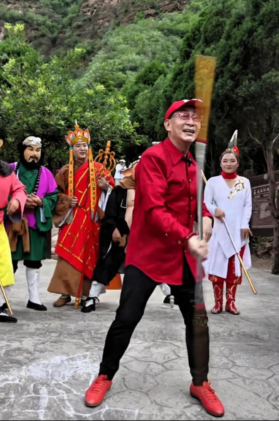 嘿,就在前些日子,四月十三號,在河南濟源的五龍口景區,六十六歲的六小齡童(章金萊先生)冷不丁又把這角兒扮上了!