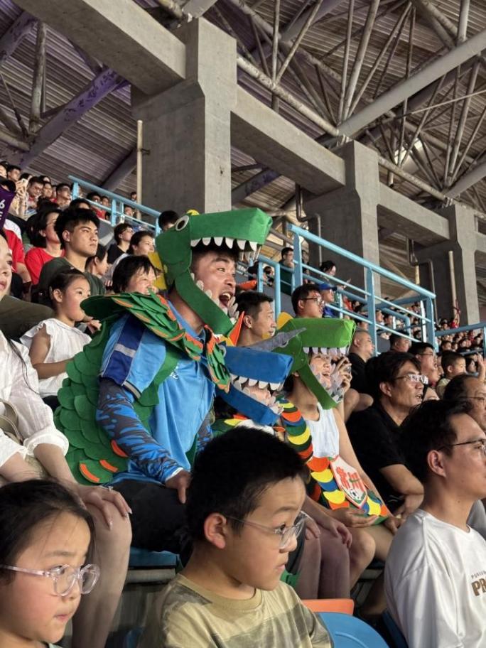 7月20日下午,蘇超常州隊比賽現場,常州“外賣餐箱寶寶”的爸爸李園園,帶著妻子女兒,全家身著自制DIY恐龍服飾,化身恐龍戰隊,為常州加油。被許多路人偶遇,在網上刷屏。