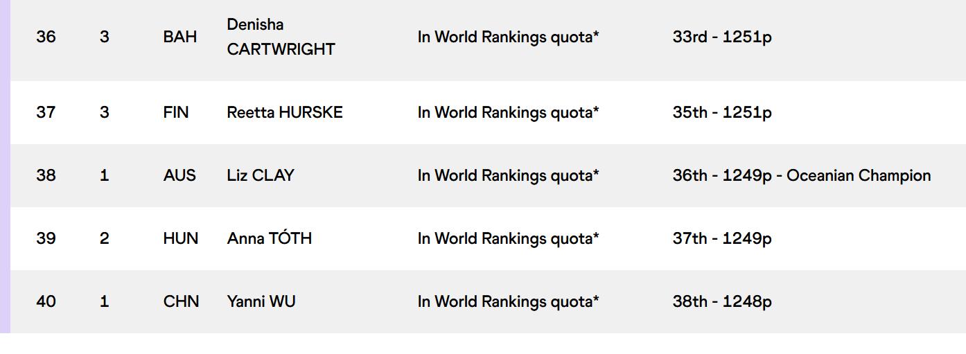 東京田徑世錦賽將于9月13日到21日舉行,這是日本繼1991年東京、2007年大阪后第三次承辦該賽事。賽事主會場為東京新國立競技場,這里曾作為2021年東京奧運會主體育場。世錦賽上女子100米欄項目共有40個參賽席位,選手可通過成績達標、積分排名和外卡三種方式拿到入場券,達標周期從2024年8月1日至2025年8月24日。該項目的達標成績?yōu)?2秒73,目前中國選手無人能達到這一成績。唯一一張外卡發(fā)給了上屆世錦賽冠軍牙買加選手丹妮爾·威廉姆斯。最終,共有31名選手靠 成績達標獲得參賽資格,9名選手靠積分排名入圍,吳艷妮排在第40位,驚險壓線晉級。