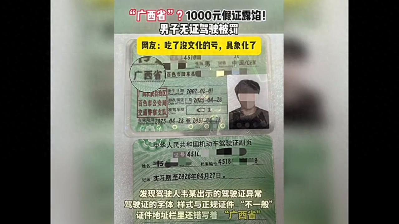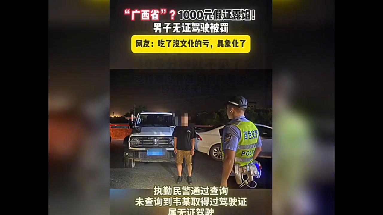 廣西省"?1000元假證露餡!男子無證駕駛被罰。