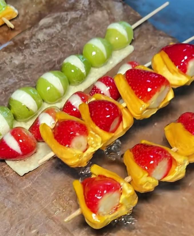 創(chuàng)新組合:將奶皮子與糖葫蘆結(jié)合,有的還加入冷萃酸奶、青提、草莓等,口感層次豐富,甜、酸、奶香交織,被形容為“甜蜜炸彈”。