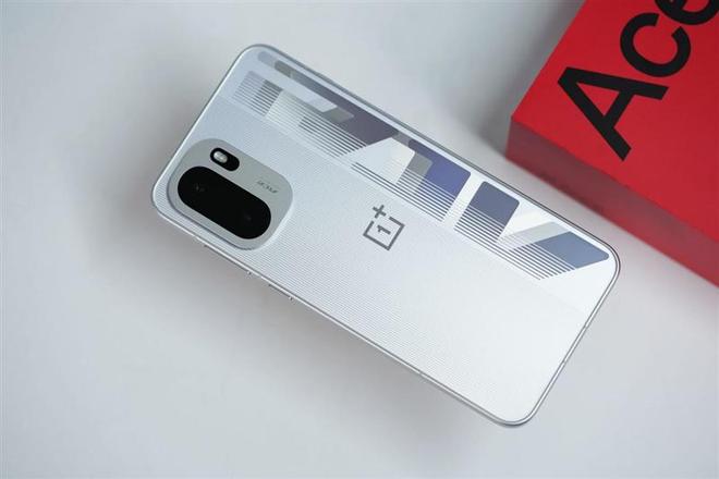 本次來到我們評測室的一加ACE 6采用快銀配色,原是白色的背殼在光線照射下有微紫色的漸變效果,右側有超大的ACE專屬速度絲印,盡顯潮流風范。