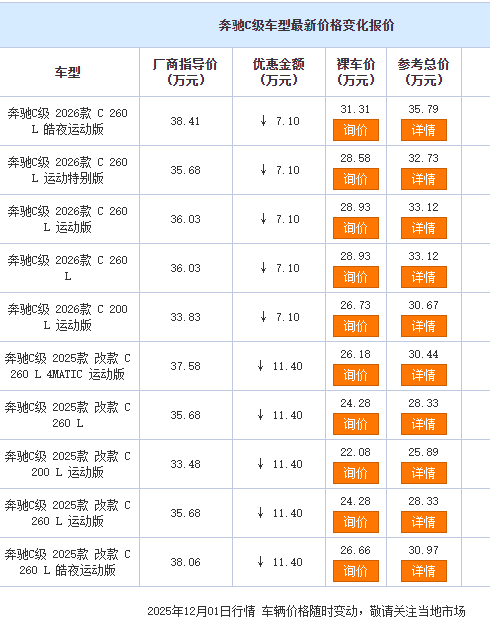 在新能源車型與同級競品的雙重壓力下,奔馳C級的降價既是市場選擇,也是對消費者需求的回應。對于追求品牌質感與舒適體驗的用戶而言,這波“骨折價”或許正是入手豪華中型車的最佳時機。