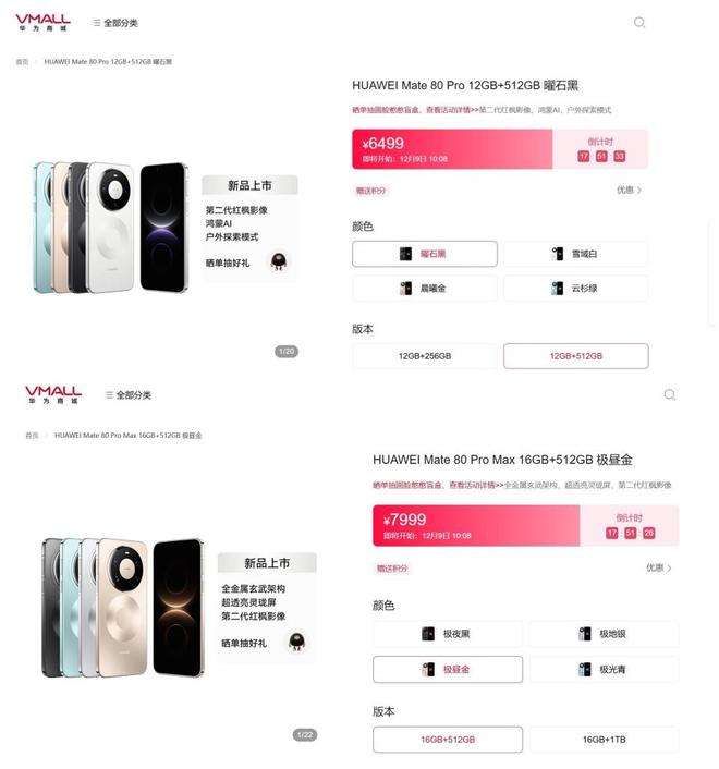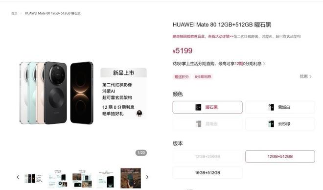 而隨著時間的推移,筆者發(fā)現(xiàn)標(biāo)準(zhǔn)版的Mate80在官網(wǎng)上顯示現(xiàn)貨銷售,12GB+512GB和16GB+512GB版本隨時可以下單。