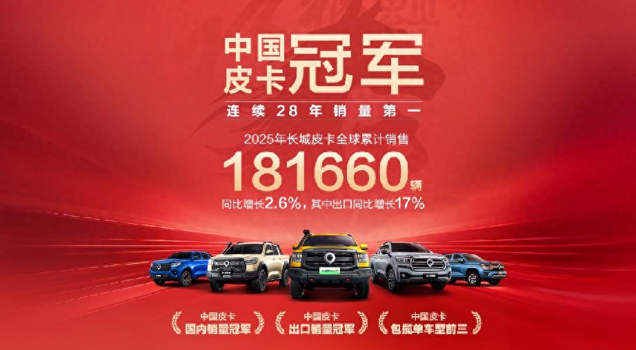 都說“風(fēng)口來了豬都能飛”,但能在風(fēng)口上穩(wěn)坐28年,那絕對(duì)不是靠運(yùn)氣。長(zhǎng)城皮卡,連續(xù)28年銷量第一,2025年全球賣了超過18萬輛,長(zhǎng)城炮更是連續(xù)62個(gè)月月銷過萬。這成績(jī),放在哪個(gè)市場(chǎng)都算得上“硬核”。